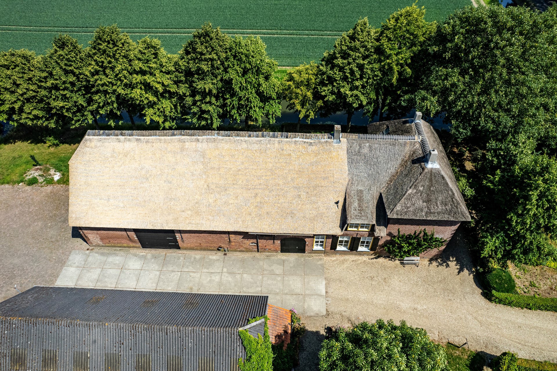 Het tevens riet gedekte achterhuis van ca. 233 m² is een integraal onderdeel van de woonboerderij en biedt een hoge, open ruimte met veel potentie. Momenteel in gebruik als opslag, maar dankzij de veelzijdige indeling is dit deel zeer geschikt voor diverse toepassingen zoals een atelier, werkplaats, extra woonruimte of andere multifunctionele doeleinden (onder voorbehoud van bestemming en benodigde vergunningen).
