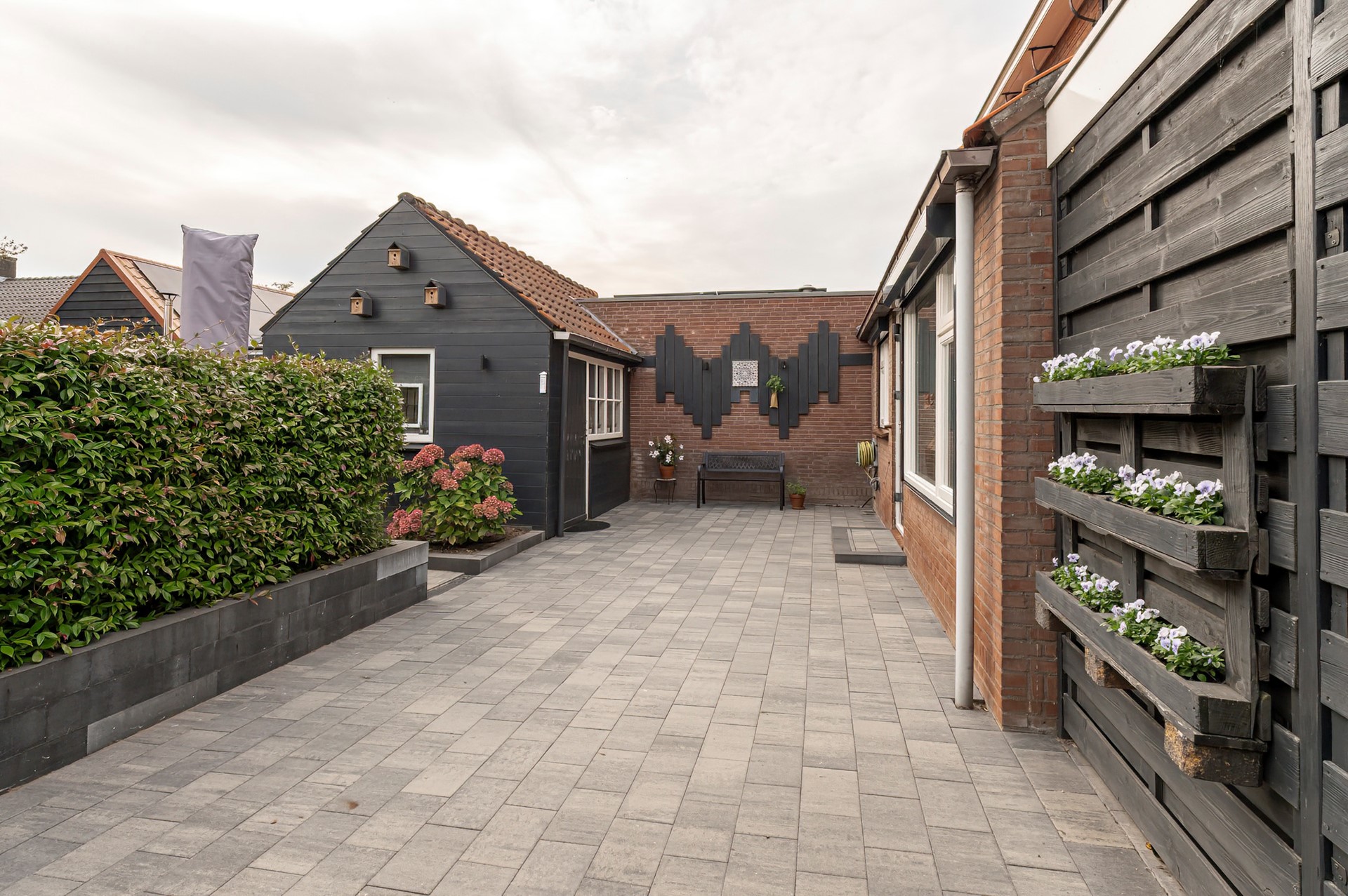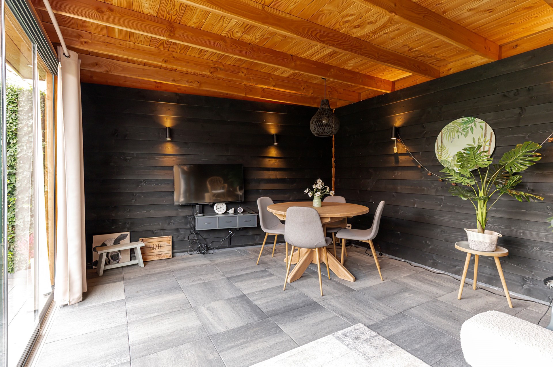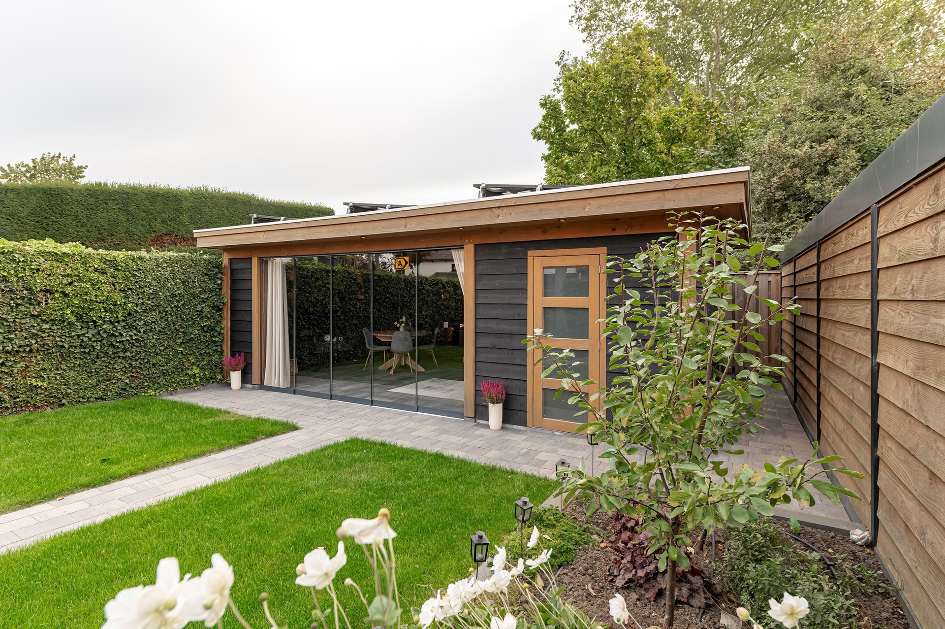 De woning beschikt over een voortuin en een handige oprit met carport. De achtertuin, op het zuiden-oosten, heeft een houten berging en achter in de tuin staat een vrijstaande overkapping met glazen schuifpui waardoor je hier heerlijk kunt zitten tot in de late uurtjes.