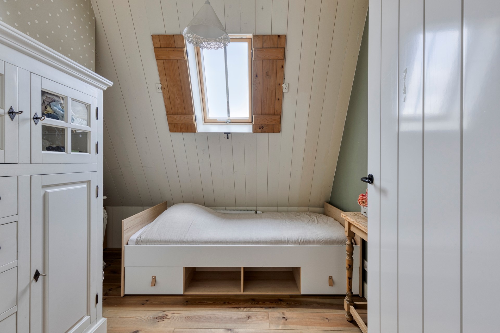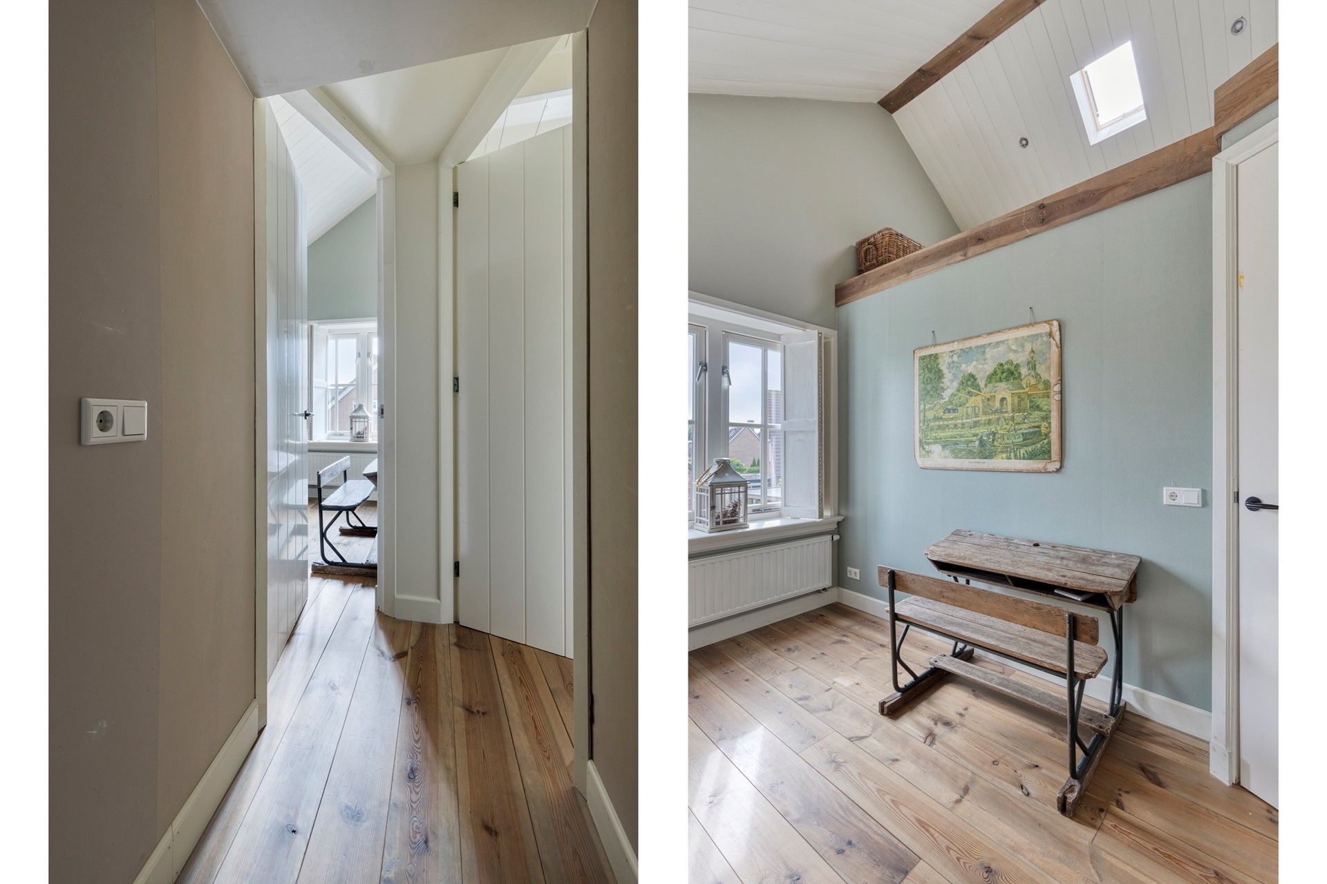 Op de eerste verdieping komt de landelijke stijl van de begane grond terug. De verdieping is verrassend ruim ingedeeld met maar liefst 6 slaapkamers, een overloop met vide en een toilet. De gehele verdieping is voorzien van een parketvloer verder zijn er praktische inbouwkasten.