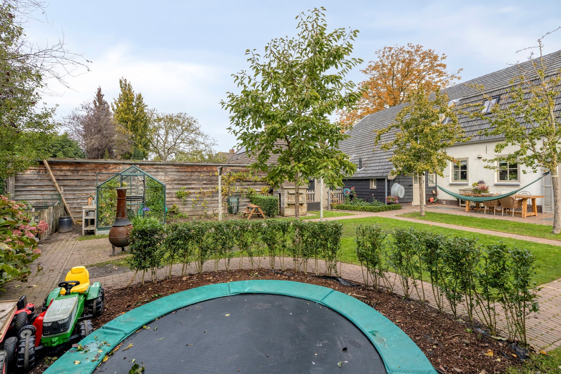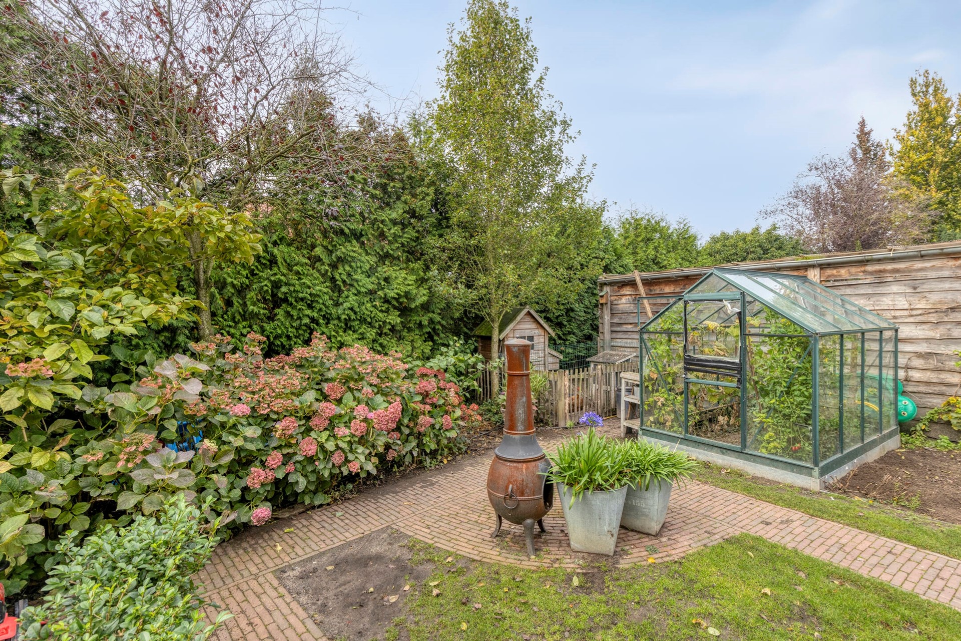 De ruime achtertuin met terras heeft aan beide zijden een vrije achterom en is gelegen op het zuidwesten. Verder staat in de tuin nog een hobbykastje, perfect voor mensen met groene vingers.