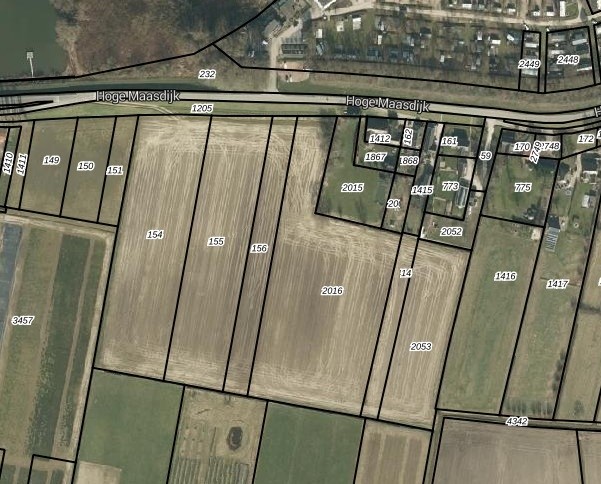 Cultuurgrond Hoge Maasdijk AndelPerceel bouwland ter grootte van 4.52.43 ha, gelegen aan de zuidzijde van de Hoge Maasdijk nabij huisnummer 134. Kadastraal bekend gemeente Woudrichem, sectie I nummer(s) 154, 155, 156, 1414, 2016 en 2053.