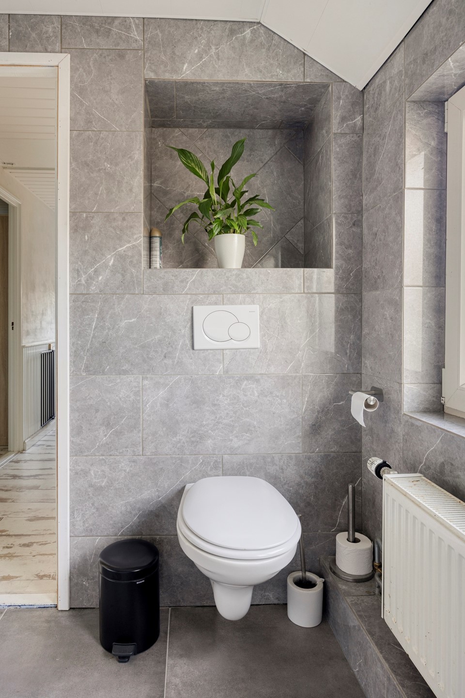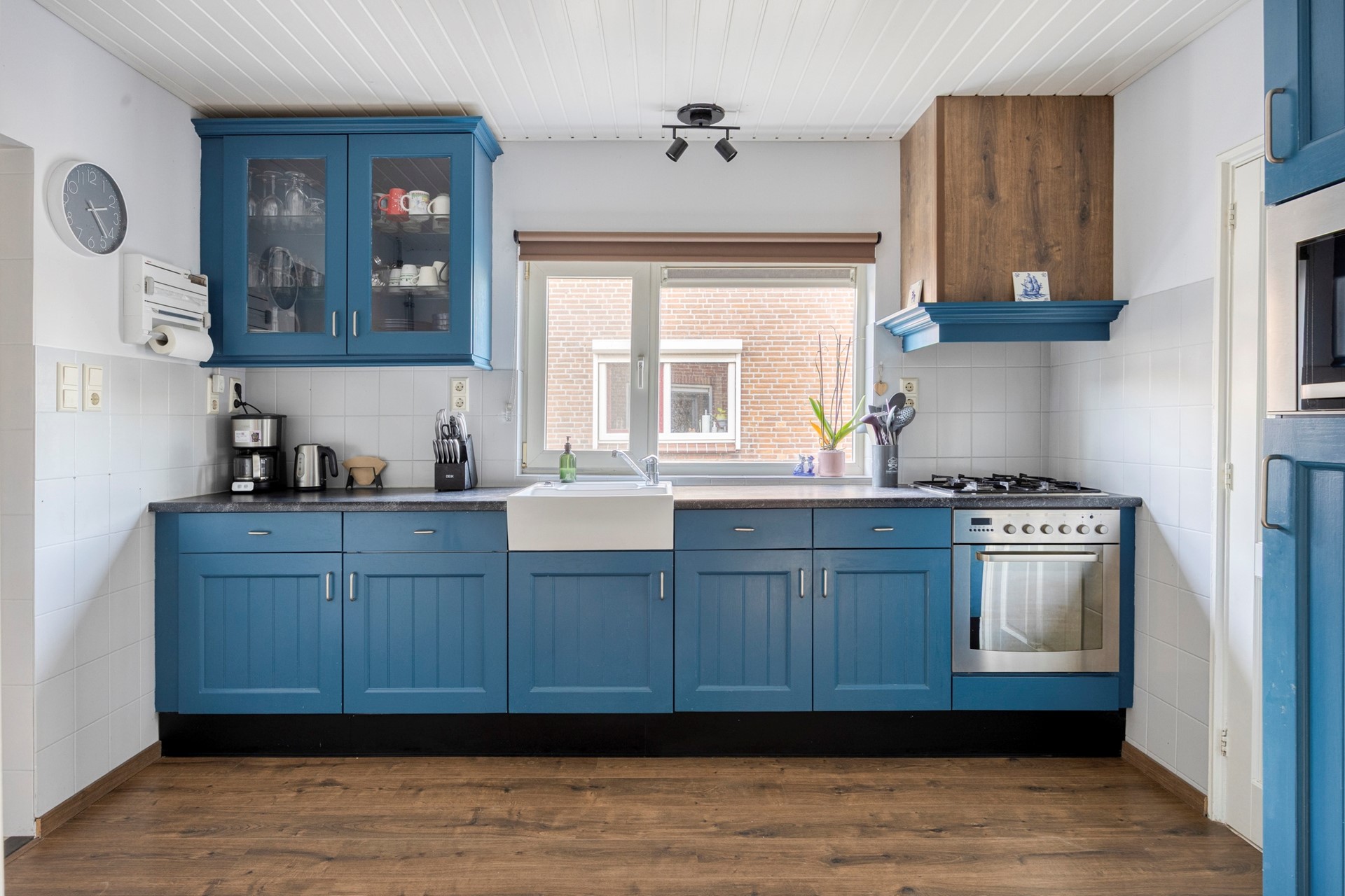 Aan de achterzijde bevindt zich de ruime bijkeuken, een bijzonder functionele ruimte met twee vaste kasten, de witgoedaansluitingen en een toilet. Vanuit de bijkeuken heb je direct toegang tot de achtertuin.