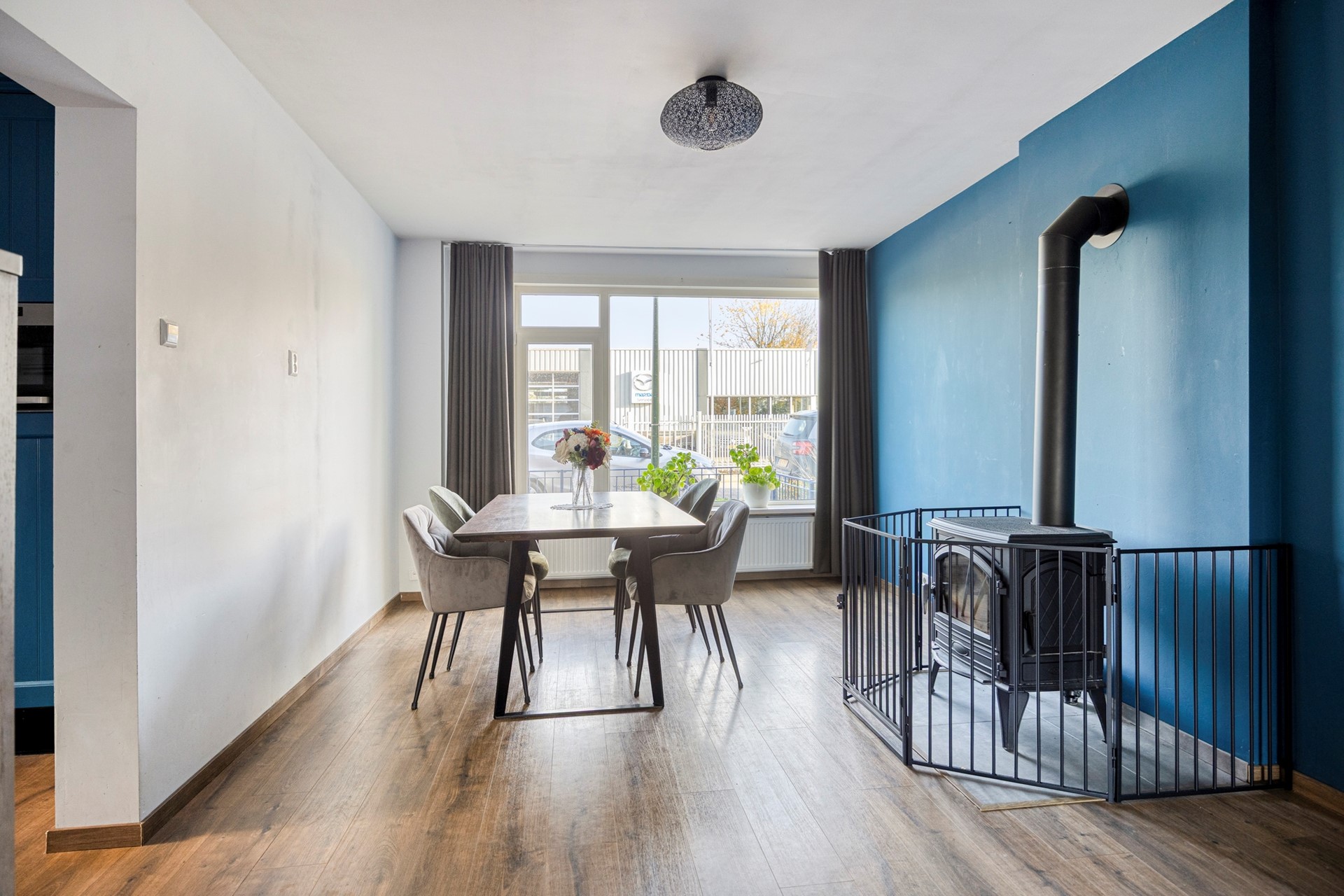 De woonkamer is strak en functioneel ingedeeld, met grote raampartijen aan zowel de voor- als achterzijde die voor veel licht zorgen, de houtkachel zorg voor extra warmte en gezelligheid. De ruimte biedt volop mogelijkheden om het helemaal naar eigen smaak in te richten.