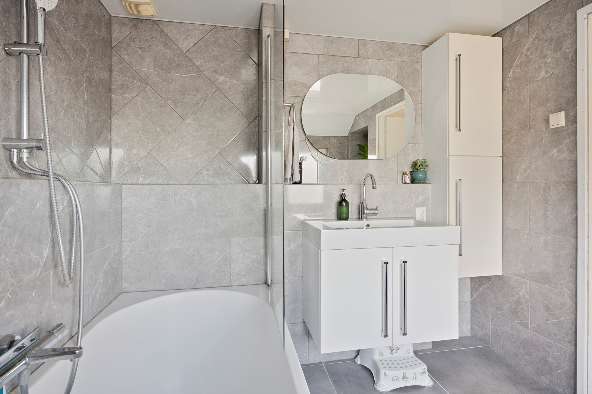 De eerste verdieping beschikt over vier goed bemeten slaapkamers en een handige walk-in closet. Op de overloop bevindt zich een extra inbouwkast voor bergruimte. De badkamer is uitgerust met een wastafel, ligbad en toilet.