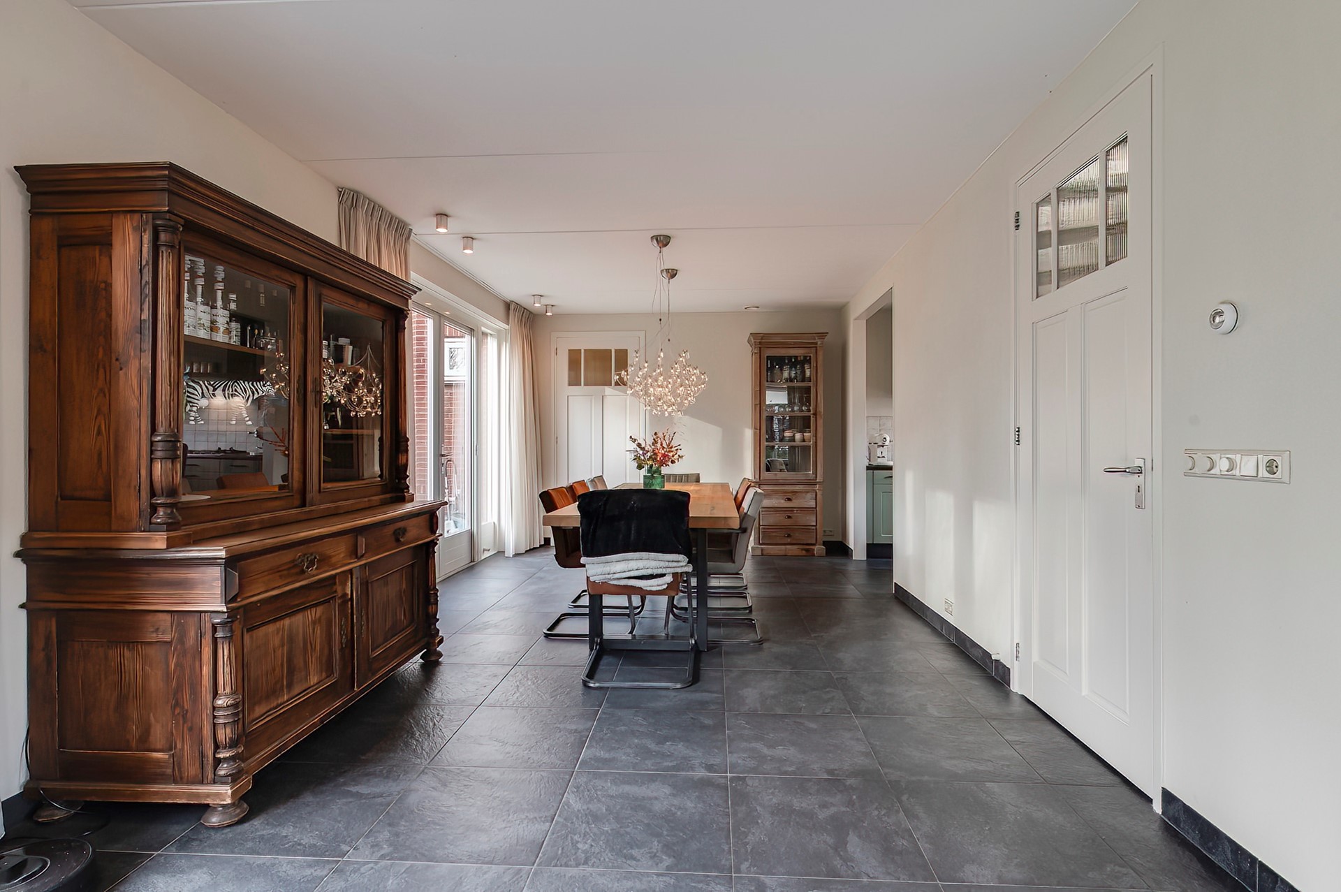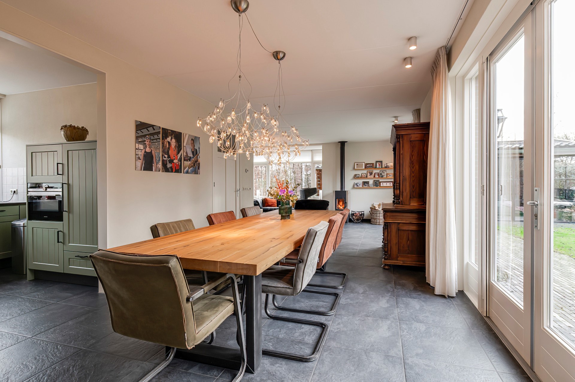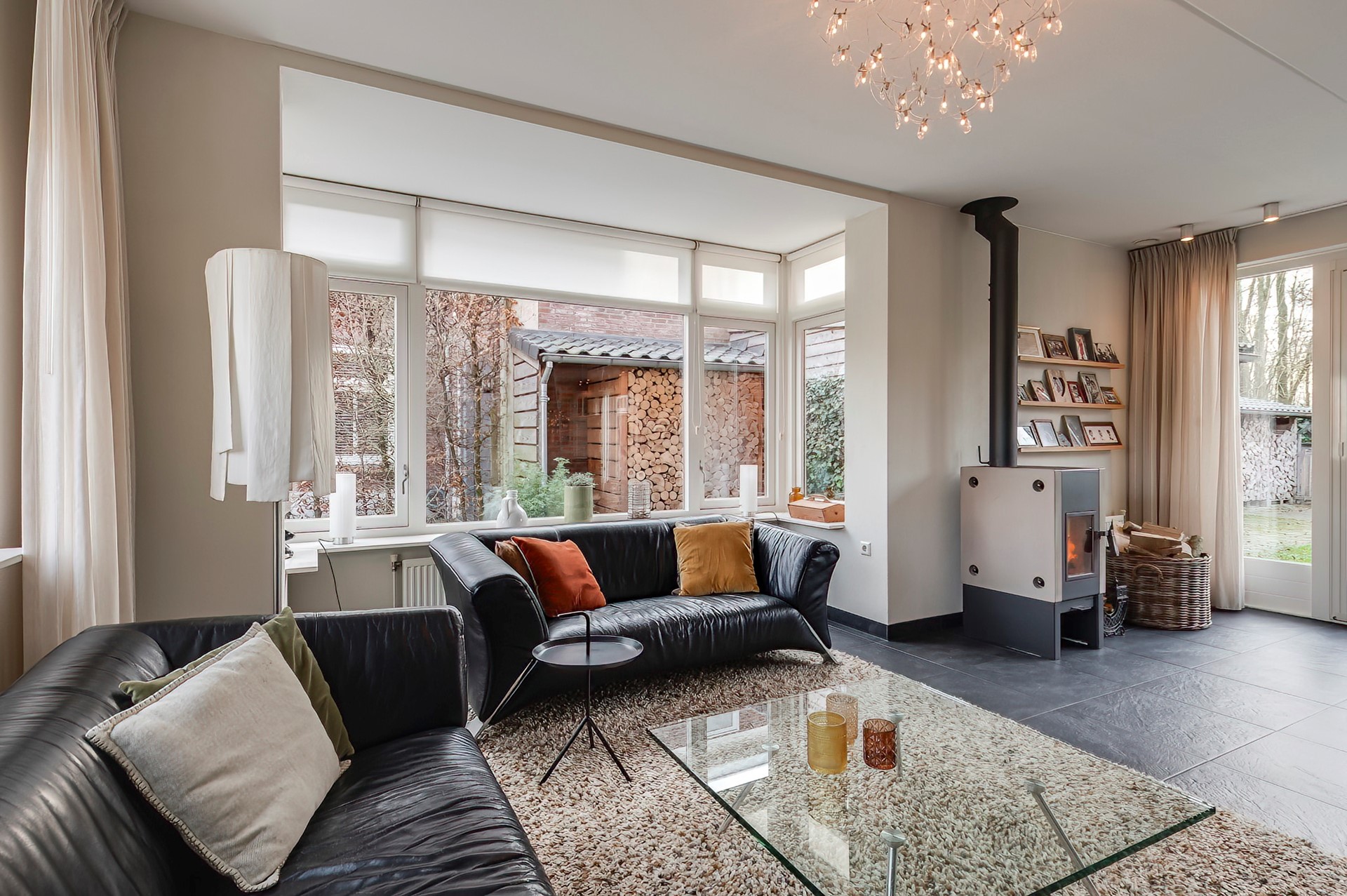 • Ruime en lichte woonkamer met houtkachel en openslaande deuren naar de tuin