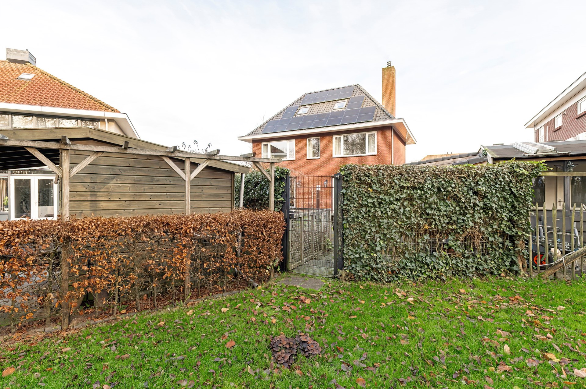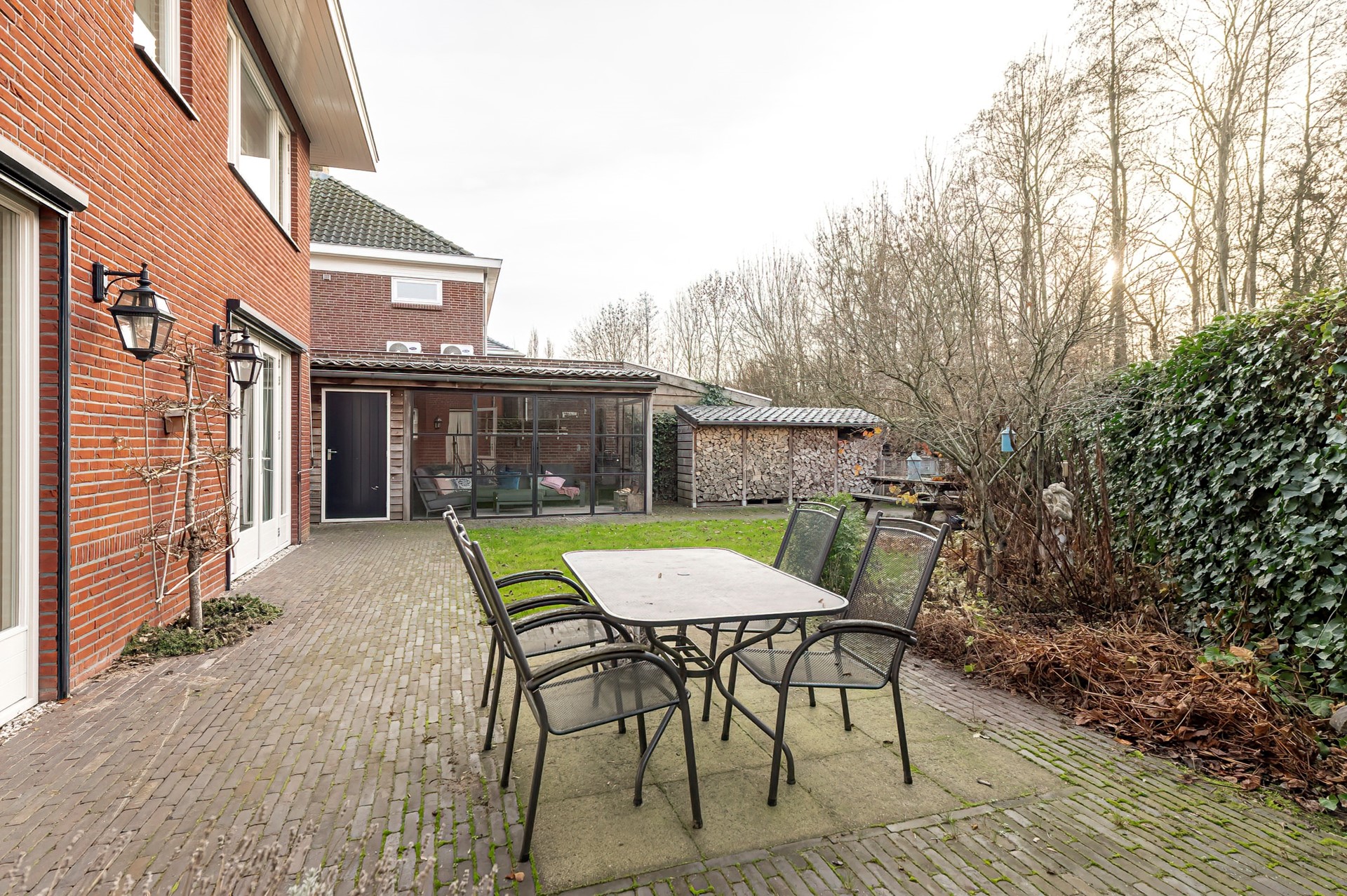 De knusse en privacy volle tuin ligt op het zuid/zuidwesten en voelt dankzij het aangrenzende bos aanzienlijk groter aan. In de tuin staat een schuur met daaraan vast een afsluitbare veranda/tuinkamer, een heerlijke plek om het hele jaar door van buiten te genieten.